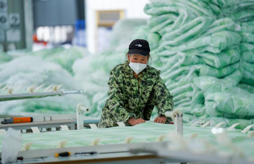 3月17日,走进铜陵市郊区老洲镇桐贵村的汇眠(铜陵)家居无限公司出产车间,一派忙碌气象映入眼皮。工人们正在拆卸、检测、包拆等工位上有序功课,一床床精彩的被子、一个个丰满的枕头正在流水线上逐步成型。工人刘胜利笑着说:“操做绗缝机缝制被褥、枕头很简单,根基不消培训,只需认识字就能上手。” 他是当地人,此前持久处置服拆工做。