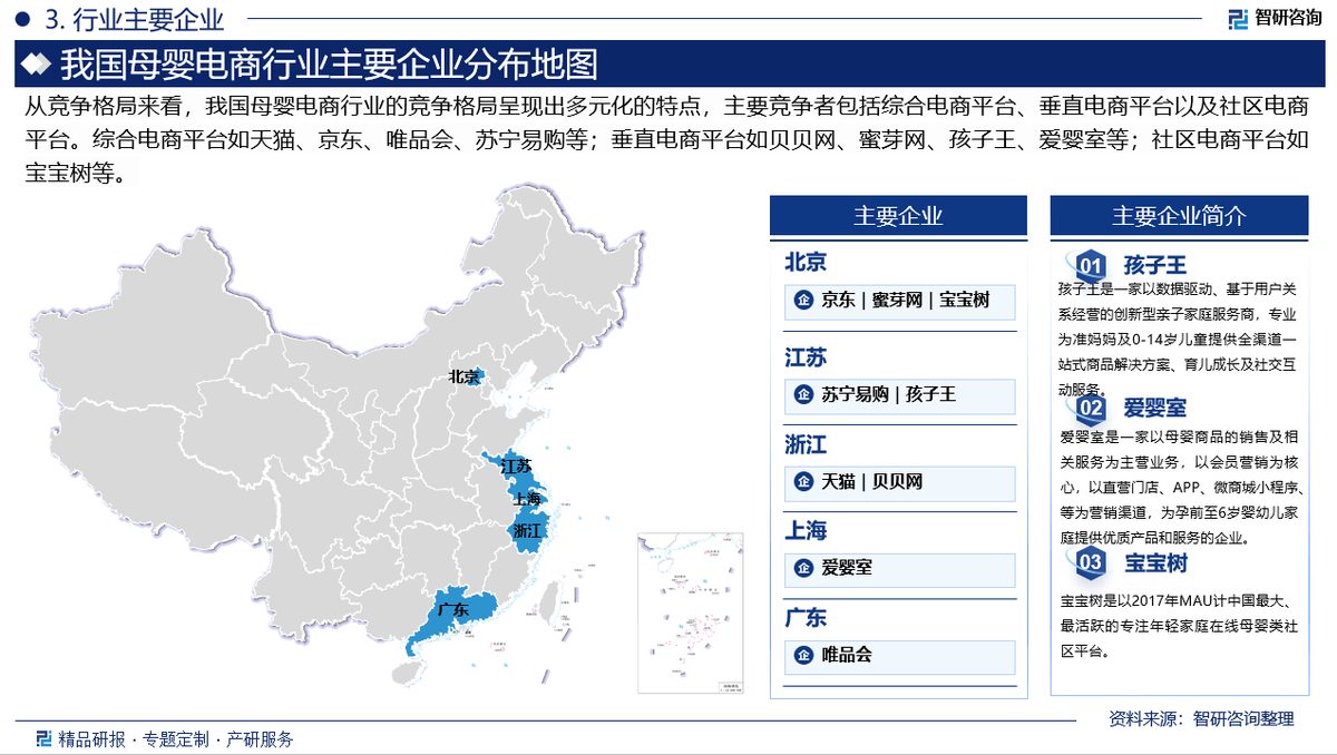做为一个了中国母婴电商十余年成长的专业机构,智研征询但愿可以或许取所有努力于取母婴电商行业企业联袂共进,供给更多无效消息、专业征询取个性化定制的行业处理方案,为行业的成长尽绵薄之力。