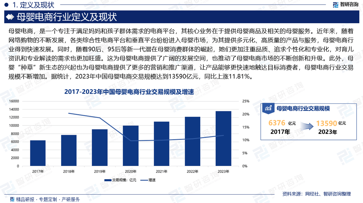 近年来,跟着收集购物的不竭成长,各类分析性电商平台和垂曲平台纷纷进入母婴市场,高质量的产物取办事,母婴电商行业获得快速成长。同时,跟着90后、95后等新一代潜正在母婴消费群体的兴起,她们愈加沉视质量、逃求个性化和专业化,对育儿资讯和专业解读的需求也愈加兴旺。这为母婴电商供给了广漠的成长空间,也鞭策了母婴电商市场的不竭立异和升级。此外,让产物可以或许更快速地触达方针消费者,母婴电商行业买卖规模不竭添加。据统计,2023年中国母婴电商买卖规模达到13590亿元,同比上涨11。81%。