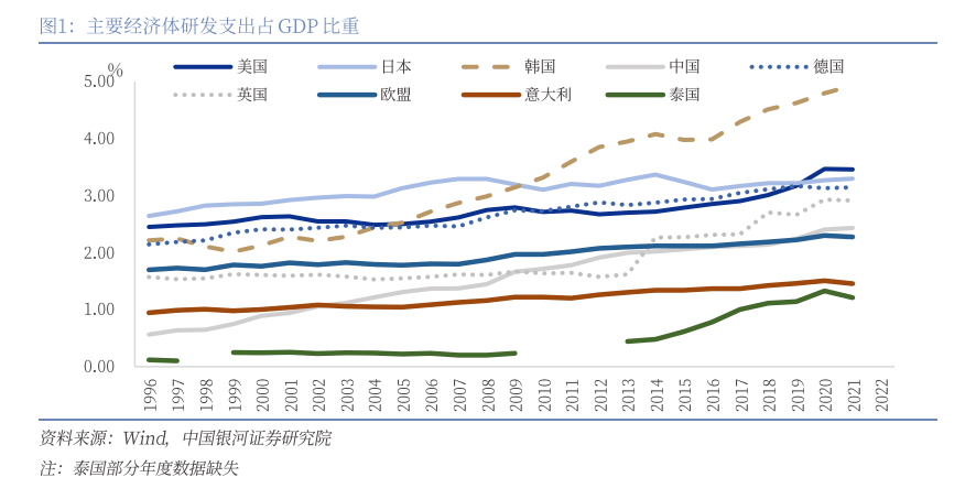 我国目前正处于高质量成长阶段,面对成长体例改变、新旧动能转换、经济布局调整等现实成长需要。当下,正在一般的经济成长纪律下,我国经济增速曾经放缓。生齿等要素盈利下降,劳动力生齿占比下降,老龄化态势渐显。财产布局新陈代谢特征较着,房地产、建建业等面对成长上限,而高手艺范畴以及数字经济范畴成长势头强劲。科技立异成为驱动将来成长的环节,我国仍有很大成长和赶超空间。当前,我国立异能力正稳步提高,但取发财经济体比拟差距仍存。具体来看,2023年,中国根本研究经费为2259。1亿元,占全社会研究取试验成长经费的比沉为6。77%,该比例取OECD发财经济体比拟偏低。我国成熟科技企业的国际合作力较之美国仍有较大差距。2024年《财富》世界500强排行榜中,美国有16家高科技企业上榜,而中国仅有6家。且对比中美科技企业的营收规模,苹果、Alphabet和微软的2023年营收别离为3832。85亿美元、3073。94亿美元和2119。15亿美元;而华为、京东、腾讯和阿里巴巴别离为994。70亿美元、1532。17亿美元、860。28亿美元和1313。38亿美元。