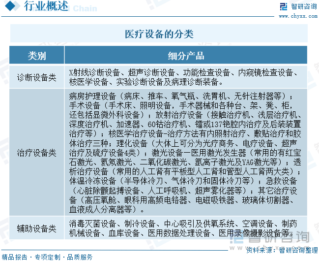 注:本文节选出自智研征询发布的《研判2025!中国医疗设备行业相关政策、财产链、成长示状、合作款式及将来前景阐发:国度政策和市场需求双沉驱动,医疗设备市场规模持续扩大[图]》行业阐发文章,如需获取行业文章全数内容,可进入智研征询官网搜刮查看。由智研征询专家团队细心编制的《中国医疗设备行业市场全景查询拜访及投资策略研究演讲》(以下简称《演讲》)沉磅发布,《演讲》旨正在从国度经济及财产成长的计谋入手,阐发医疗设备行业将来的市场,挖掘医疗设备行业的成长潜力,预测医疗设备行业的成长前景,帮力医疗设备行业的高质量成长。